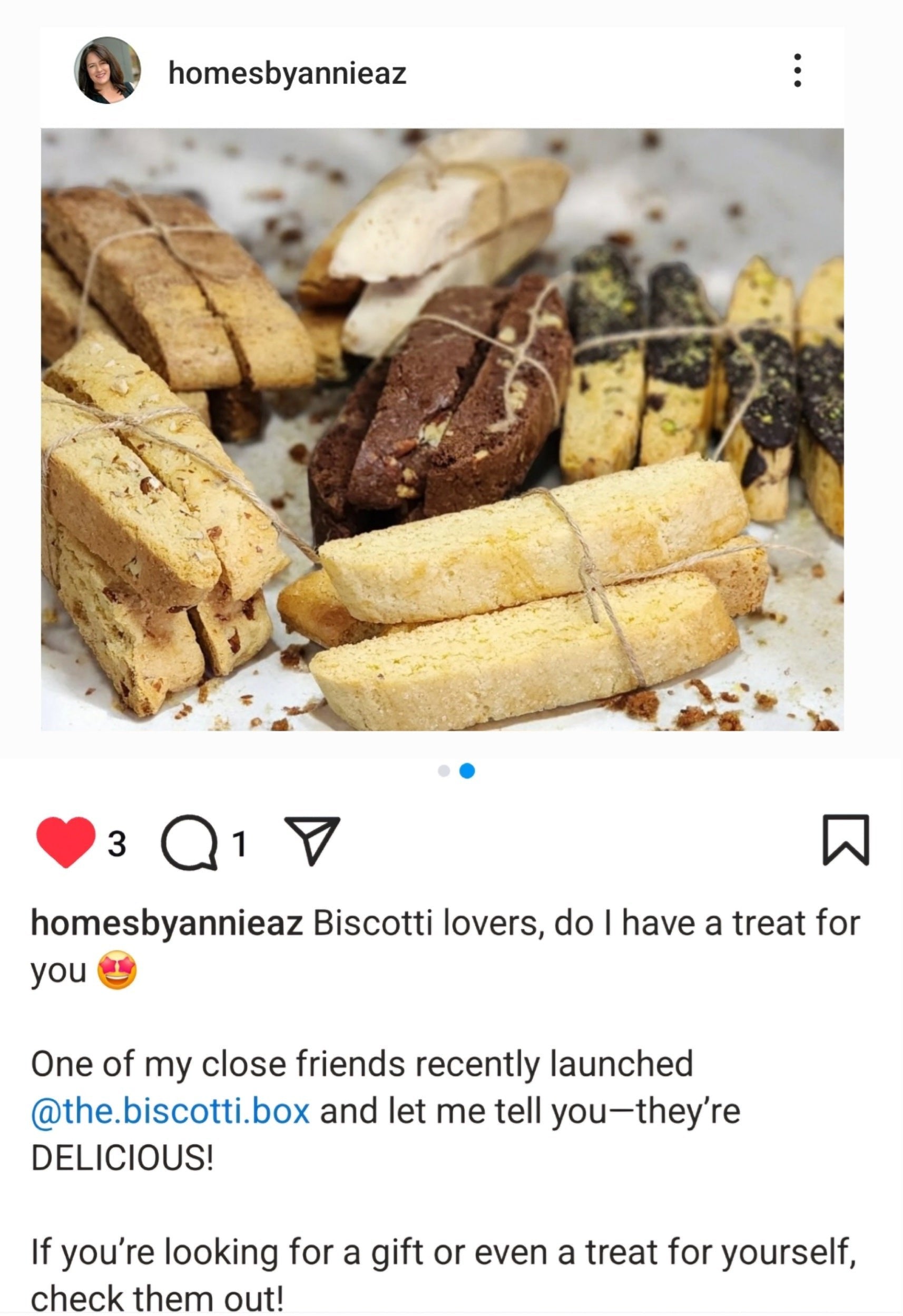 Give a shoutout with #BakeLove when your biscotti box arrives!