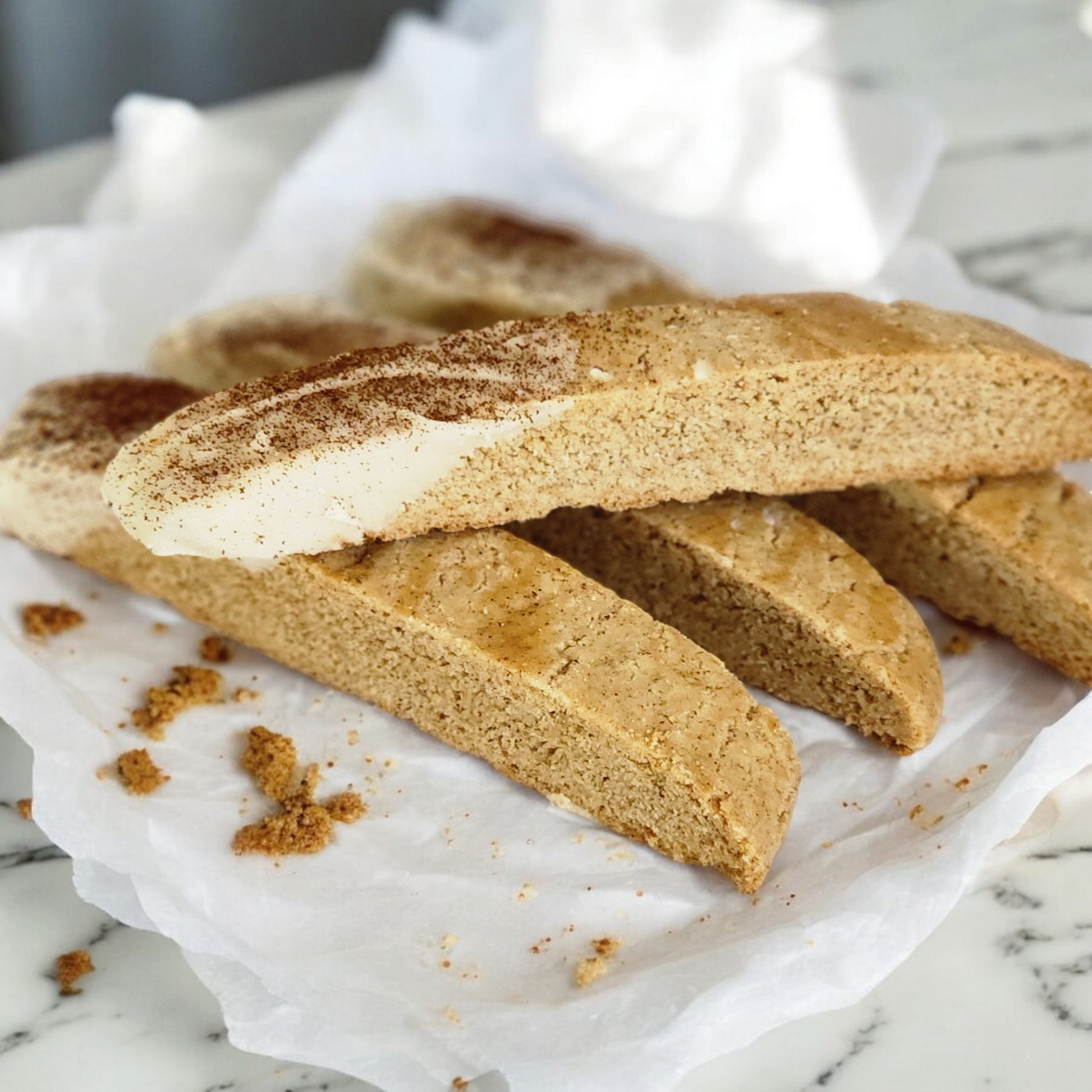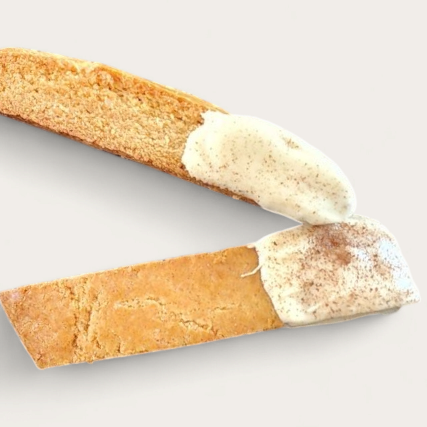 Get ready for a chai spice adventure with the Vanilla Chai Spice Biscotti dunked in vanilla melt and lightly sprinkled with espresso powder! This crunchy biscotti with spicy sweet combo of Cinnamon, Cardamom, AllSpice & Ginger is just asking to be dunked in a latte (regular or chai!).